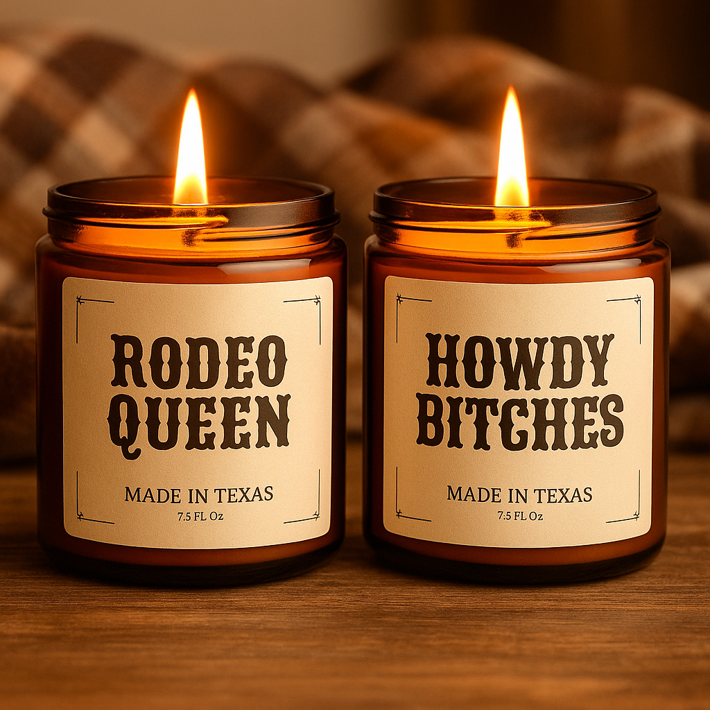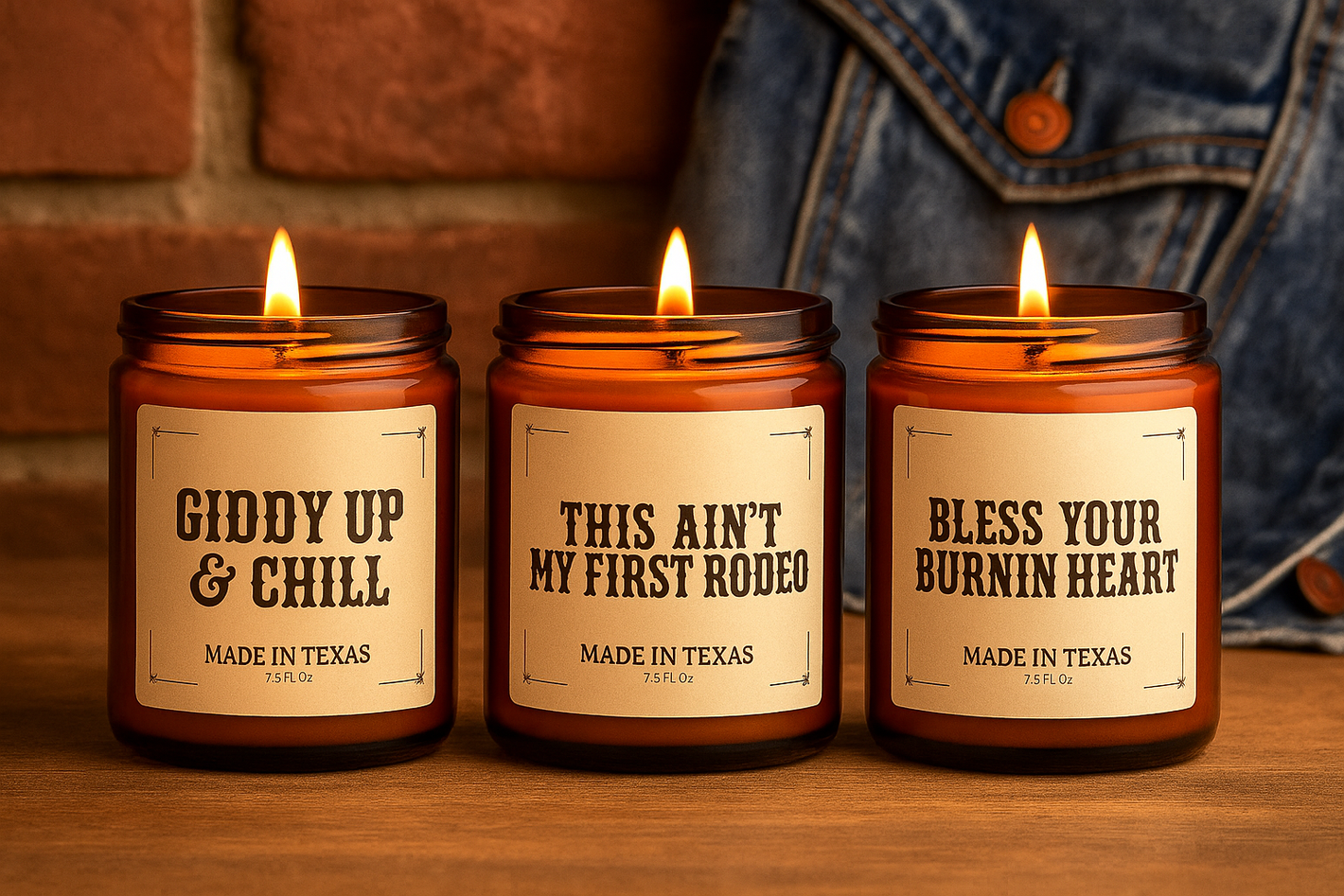 Each scent is hand-poured to perfection with enough attitude to slap the glitter off a cowboy hat.
